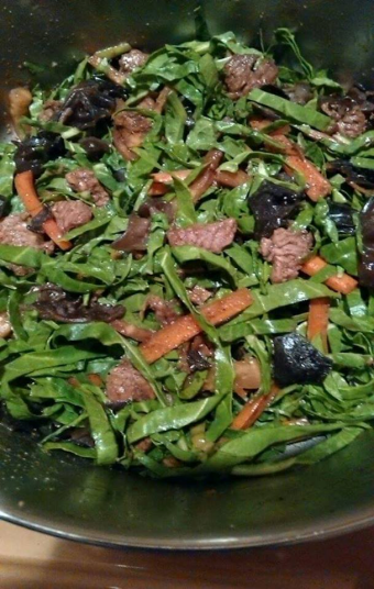 Accompagner ce plat avec du riz blanc et des cubes de tofu frit.